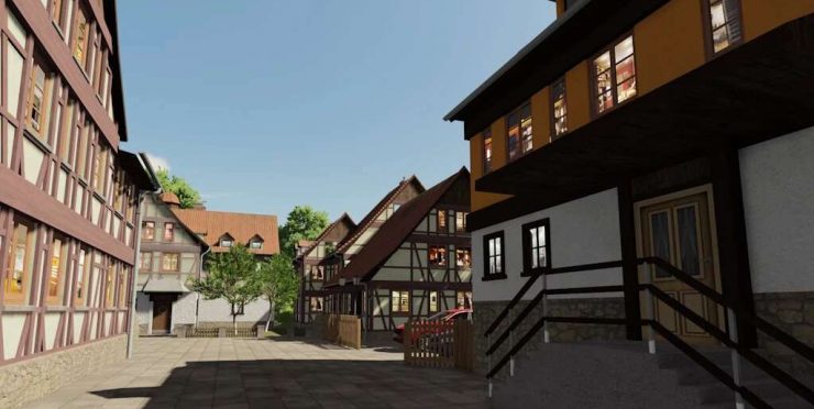 This prefab contains 16 different buildings. 8 Are with a timbered Front the others have a plastered Front.
