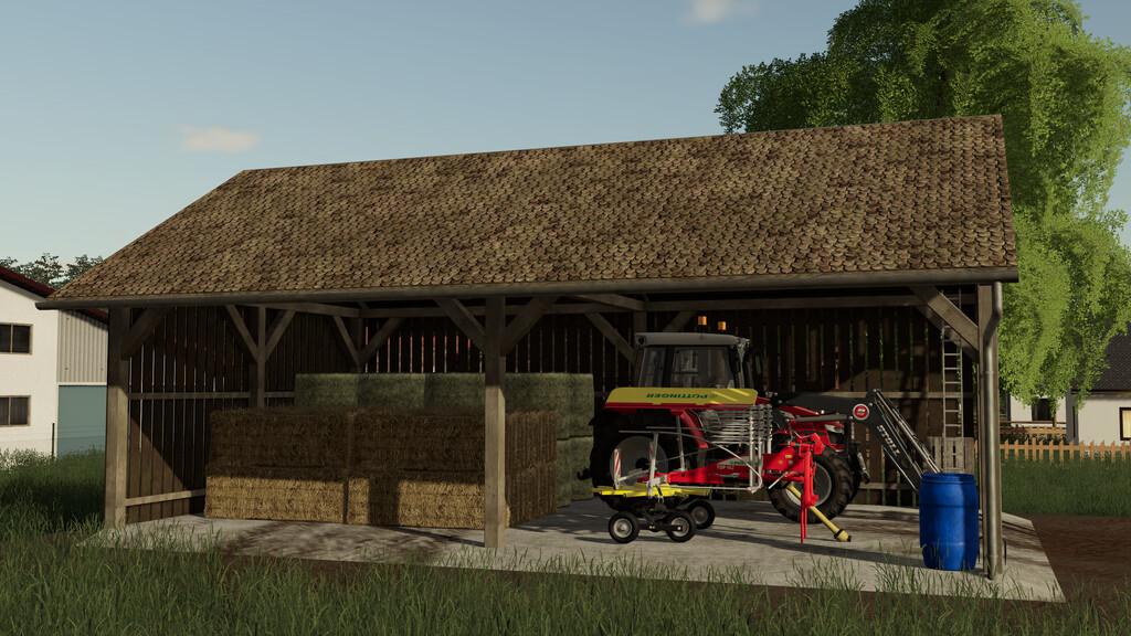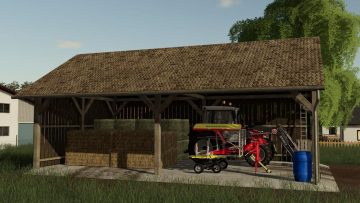 A field shelter for storing bales, but can also serve as a storage facility for equipment.
