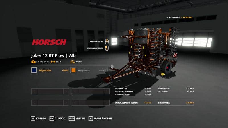 Horsch Joker 12RT Plow for Farming Simulator / Farming Simulator 19 (PC version).