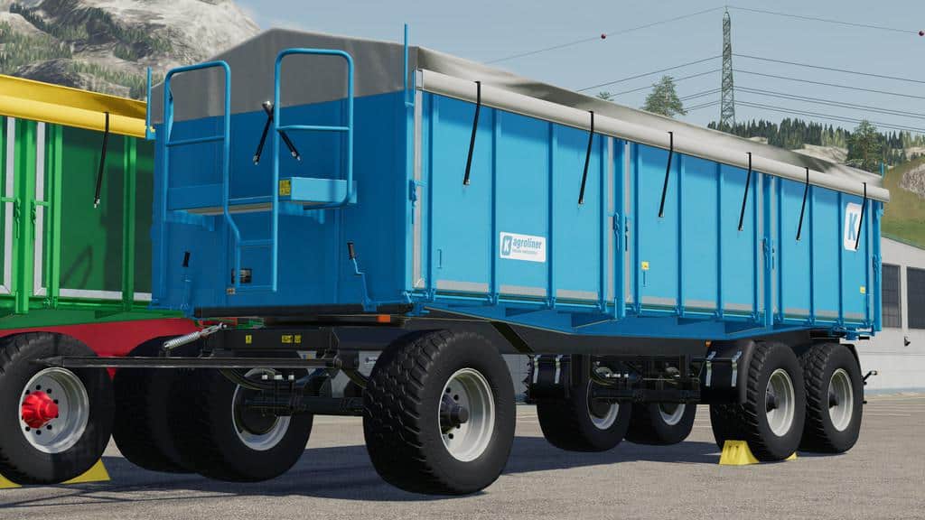 The Agroliner three-axle three-way tipper is designed for tractor and truck operation.