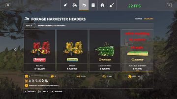 This forage harvester header can go 30 kph and 15 mph. Can also harvest 25 meters at a time. Cost is 16000 and lease is 816.