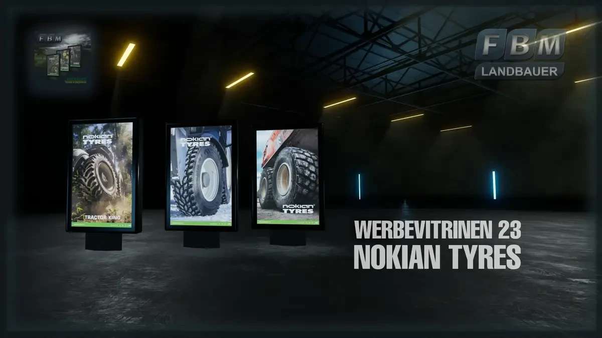 The new Standard 23 model of the Landbauer advertising showcase in 3 different versions with German advertising motifs from the manufacturer Nokian.