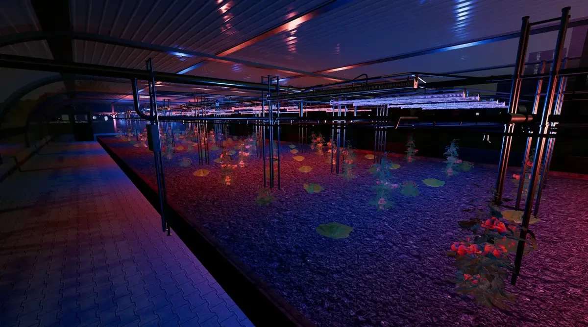 There is also a power plant, which is needed to produce electricity to operate the greenhouse.