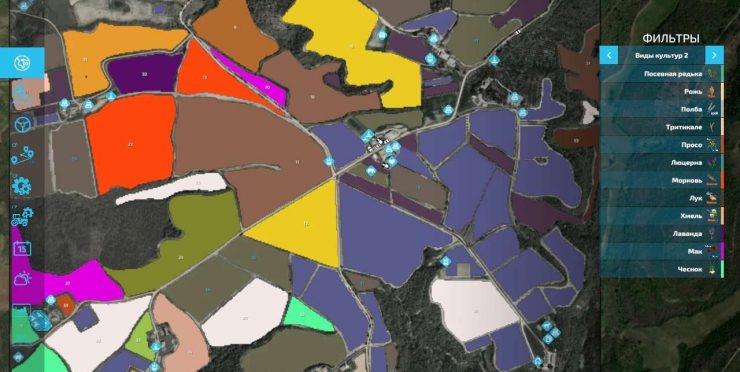 Real Google terrain, 11 new fruits, 57 farmlands, 53 fields (0.2-13 ha, including 6 grassfields), 6 forests (more than 13,000 trees), 29 vineyards, 14 olive groves, cosy villa with a pool, 4 lakes with water intake, vehicle shop, workshop, 3 gas stations, cow barn and livestock market, all the animal types, real animal diet, 7 sell/buy points, 20 production points, generators, 2 bunker silos, 6 storages, Central Italy GEO, friendly neighbors and good contracts.