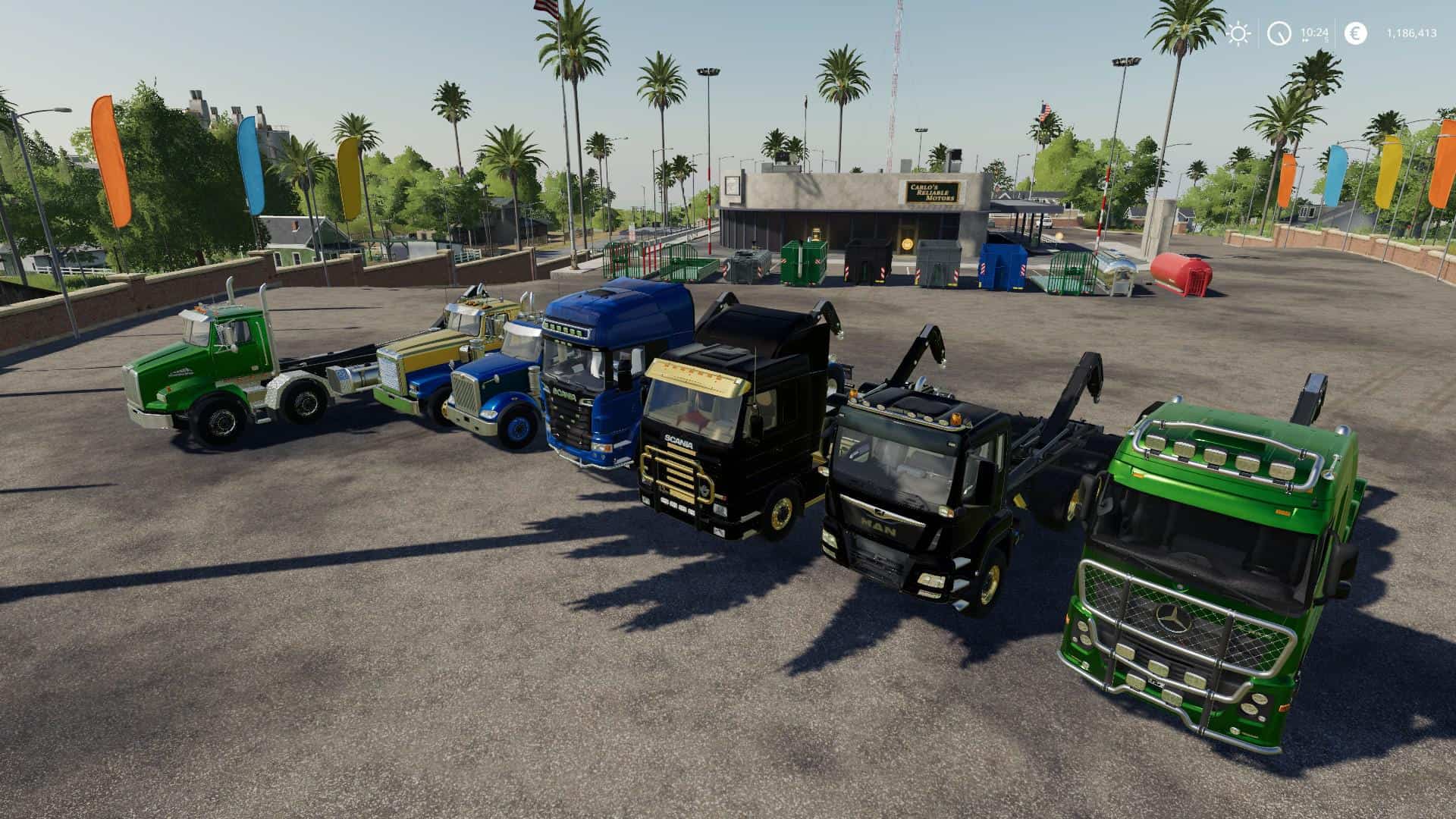 Attention! some shorter containers will raise the trucks backend while unloading, drive forward a bit when that happens!